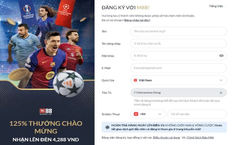 Khi đăng ký tài khoản M88, người chơi cần đảm bảo mọi thông tin cá nhân như họ tên, số điện thoại, email đều được nhập chính xác và thuộc quyền sở hữu của mình. Đây là yếu tố cực kỳ quan trọng vì toàn bộ quá trình xác minh tài khoản, nạp – rút tiền và hỗ trợ sau này đều dựa trên dữ liệu đã đăng ký ban đầu. Việc cung cấp thông tin sai lệch có thể khiến tài khoản bị từ chối giao dịch hoặc khóa vĩnh viễn.